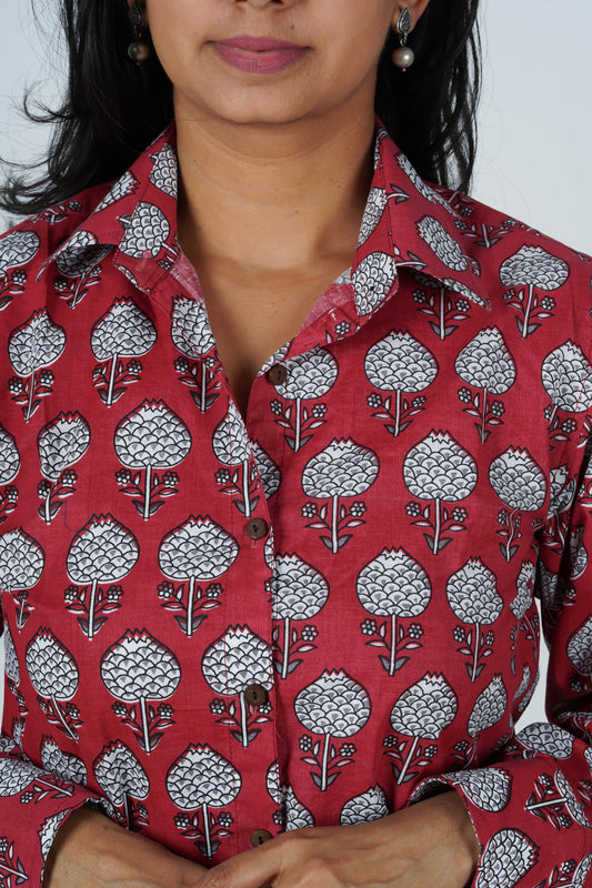 Red Charm Block Printed Shirt | Long Sleeve Shirt