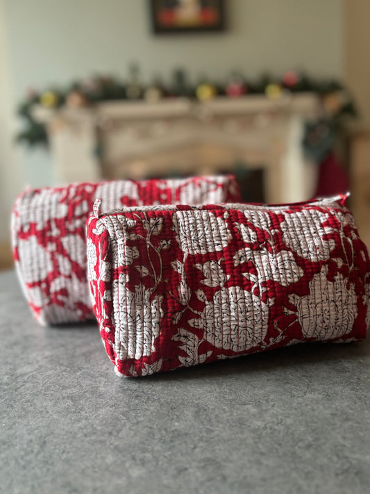 Sold outRed Floral Wash Bags - Set of 2
