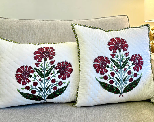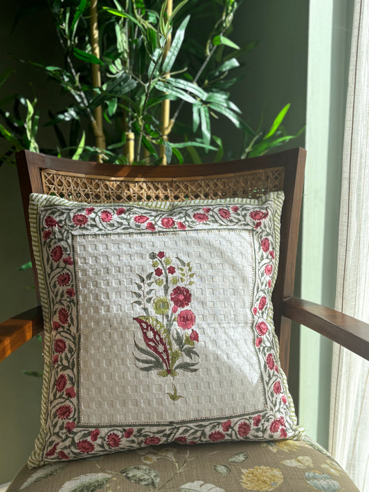 Scarlet Harmony Luxury Cotton Block Printed Cushion Cover