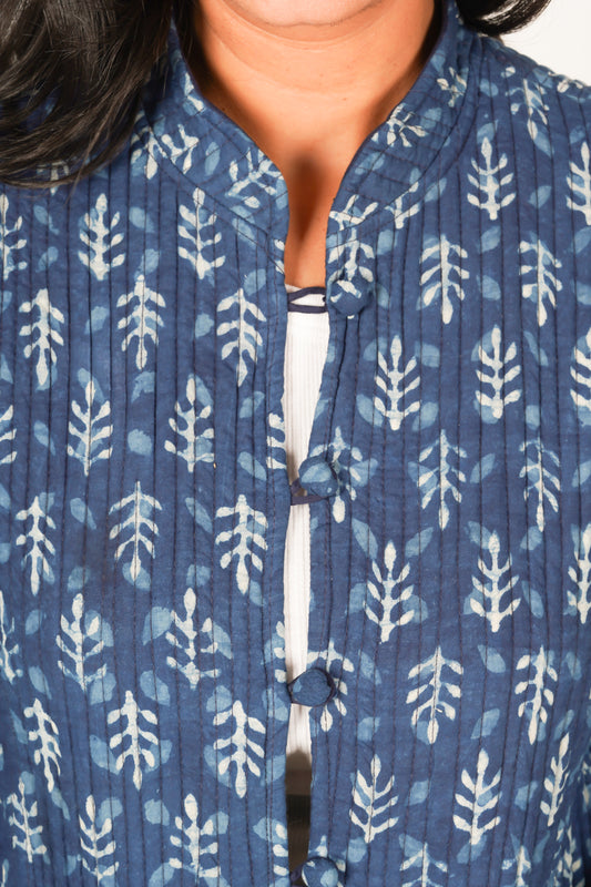 Indigo Bliss Block Printed Jacket | Long Sleeve Quilted Jacket