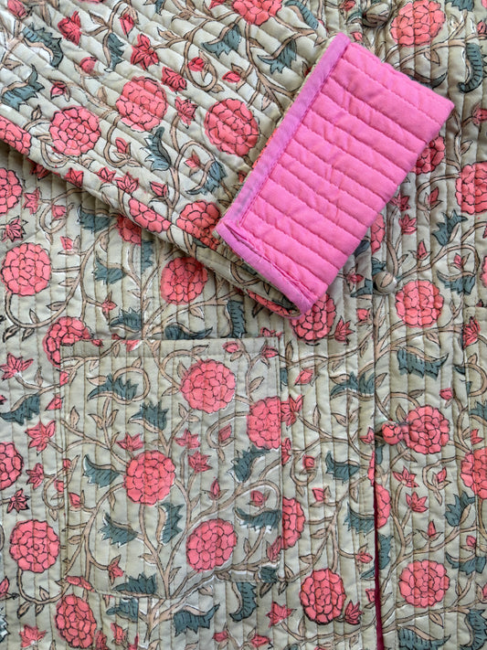 Floral Bliss Block Printed Quilted Jacket