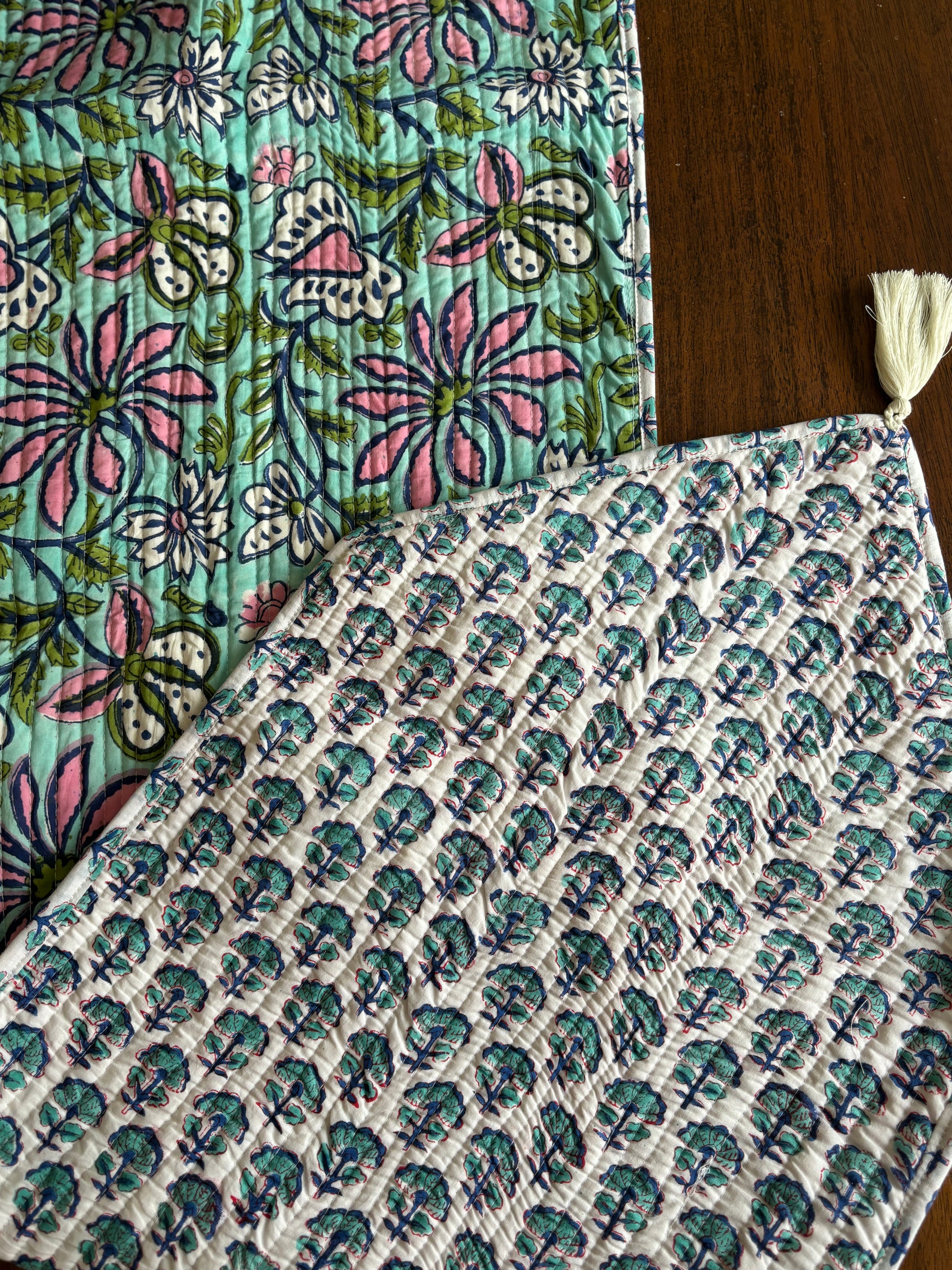 • Crafted with Care: Hand-block-printed on 100% cotton with quilted texture.